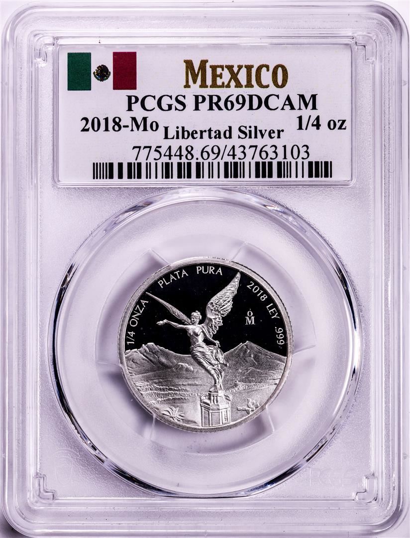 One 2018-Mo Mexico Proof 1/4 oz Silver Libertad Coins PCGS PR69DCAM. PCGS Graded.