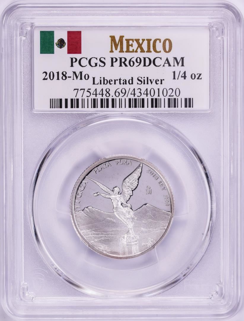 One 2018-Mo Mexico Proof 1/4 oz Silver Libertad Coin PCGS PR69DCAM. PCGS Graded.