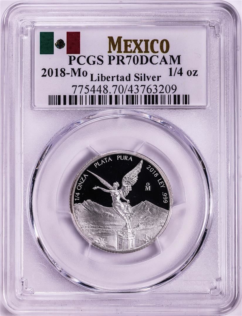 One 2018-Mo Mexico Proof 1/4 oz Silver Libertad Coin PCGS PR70DCAM. PCGS Graded.