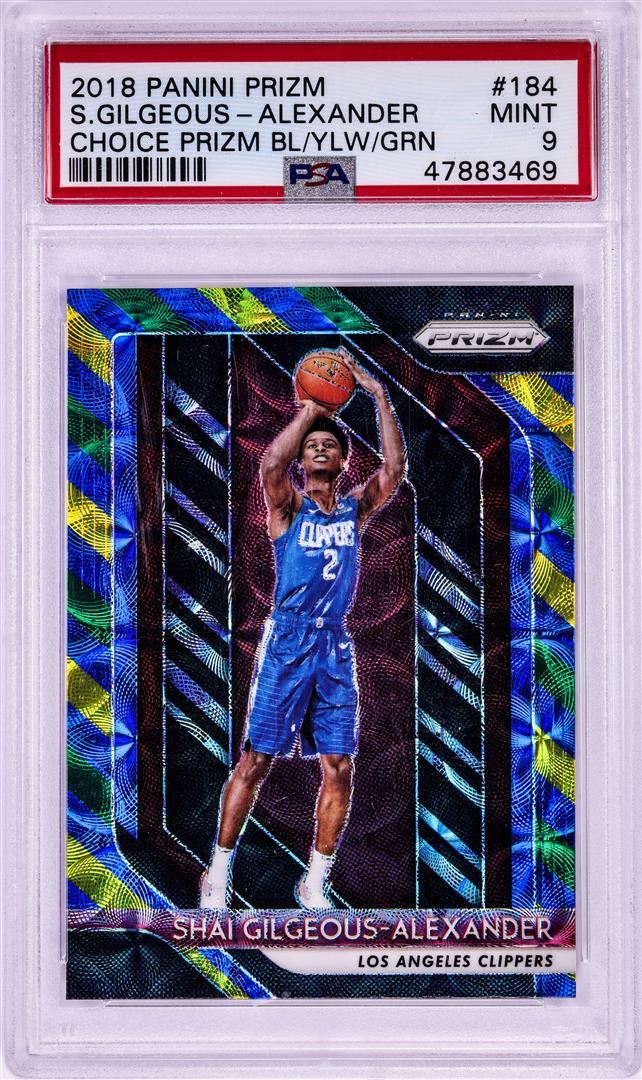 One 2018 Panini Prizm Choice BL/YLW/GRN Shai Gilgeous-Alexander NBA Card #184 PSA Mint 9. PSA Certified.