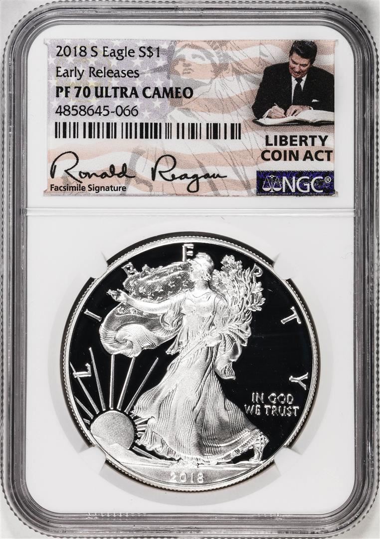 2018-S $1 Proof American Silver Eagle Coin NGC PF70 Ultra Cameo ER Reagan Signature