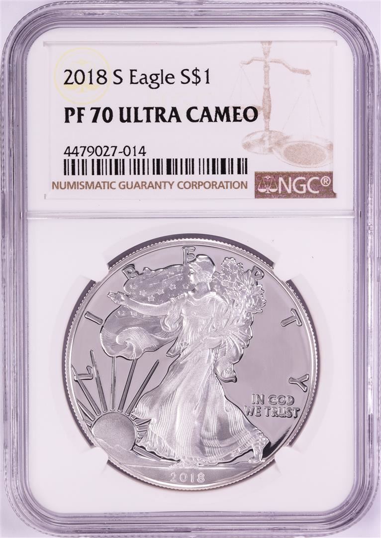 2018-S $1 Proof American Silver Eagle Coin NGC PF70 Ultra Cameo