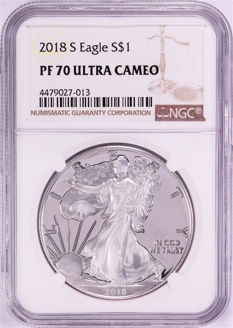 2018-S $1 Proof American Silver Eagle Coin NGC PF70 Ultra Cameo