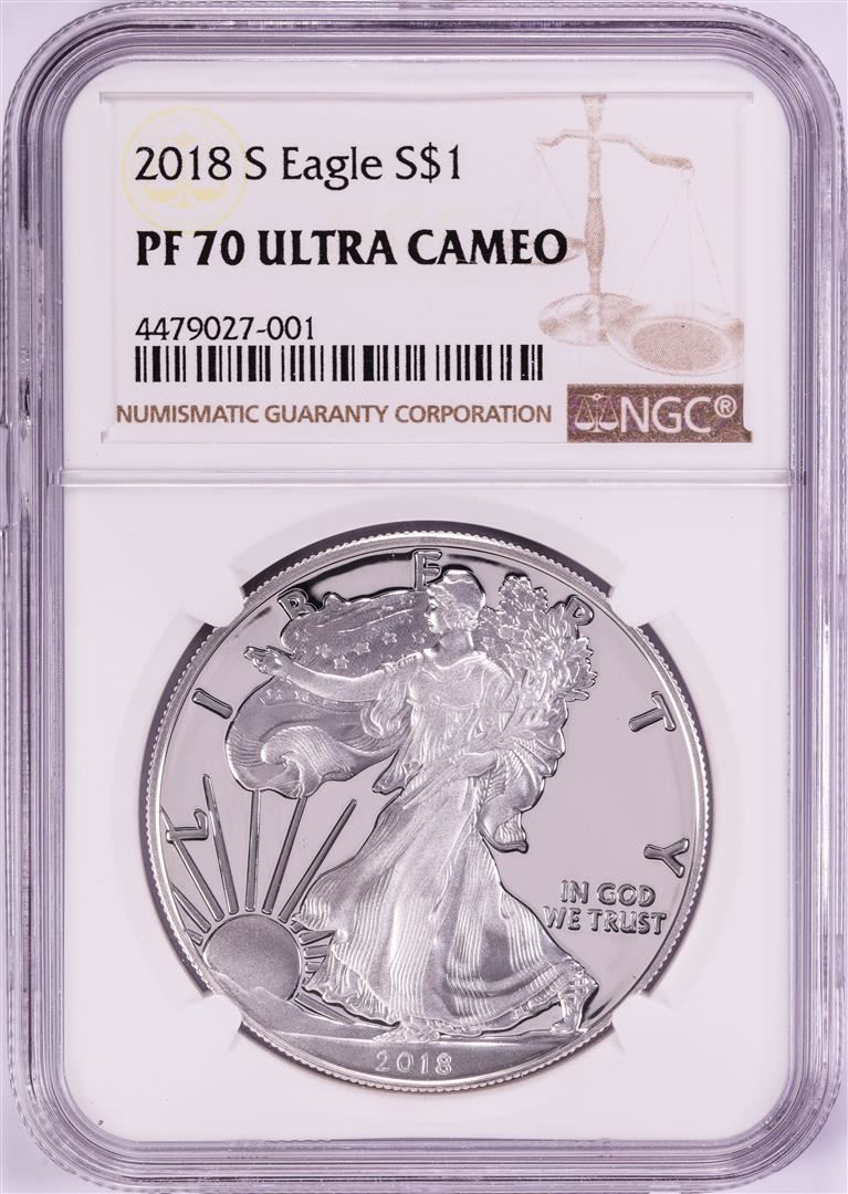 2018-S $1 Proof American Silver Eagle Coin NGC PF70 Ultra Cameo