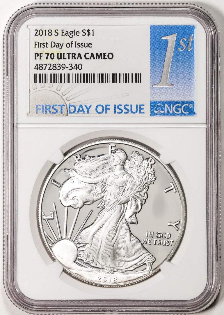 2018-S $1 Proof American Silver Eagle NGC Coin PF70 Ultra Cameo First Day of Issue