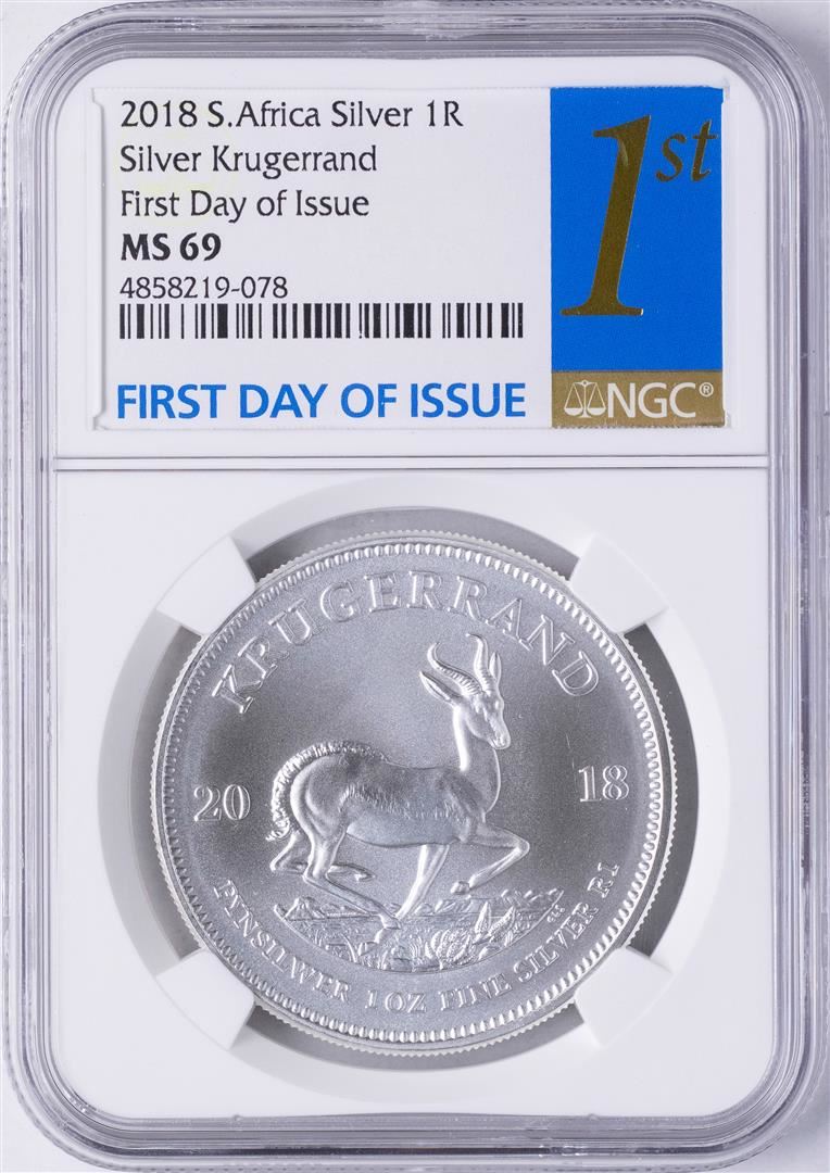 2018 South Africa Krugerrand Silver Coin NGC MS69 First Day of Issue
