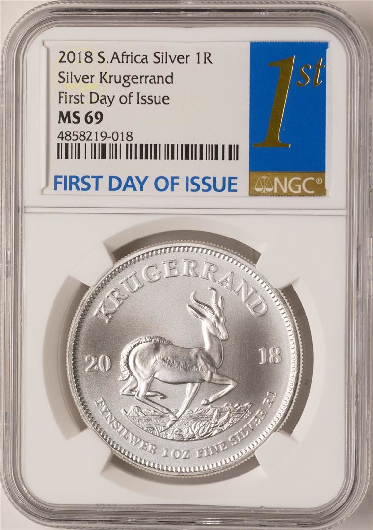 2018 South Africa Krugerrand Silver Coin NGC MS69 First Day of Issue