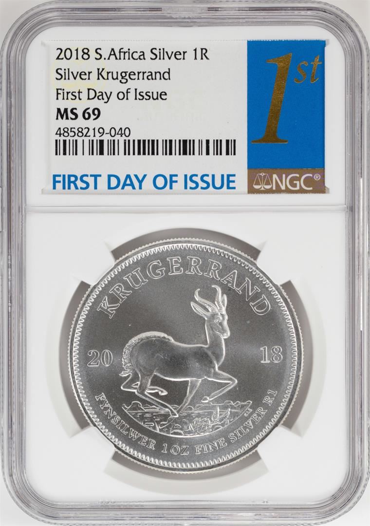 2018 South Africa Krugerrand Silver Coin NGC MS69 First Day of Issue