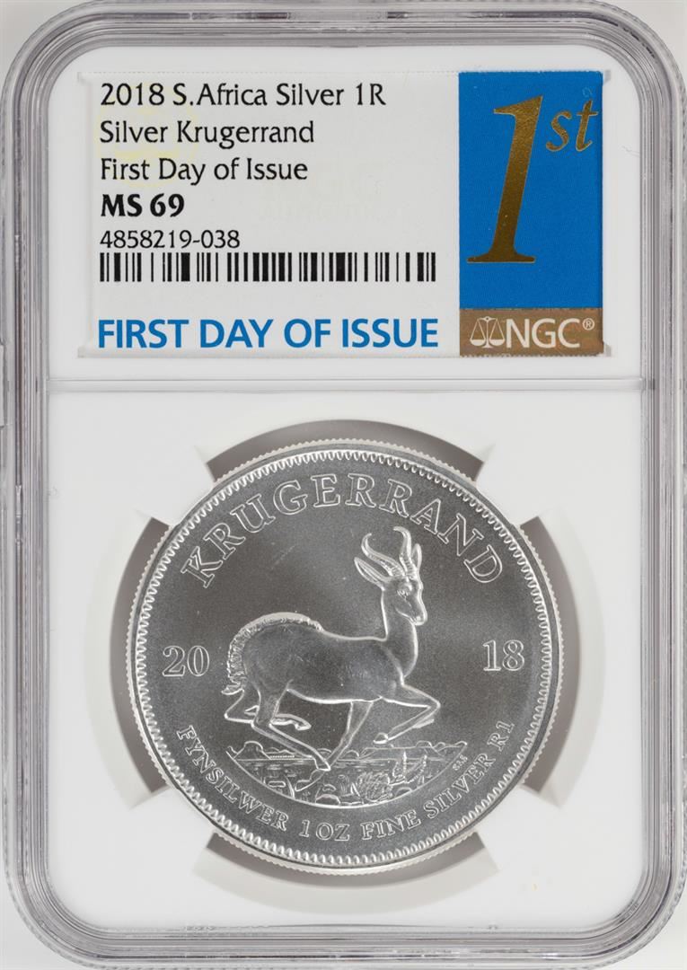 2018 South Africa Krugerrand Silver Coin NGC MS69 First Day of Issue