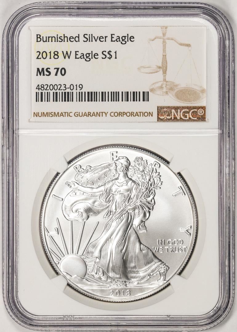 One 2018-W $1 Burnished American Silver Eagle Coin NGC MS70. NGC Certified.