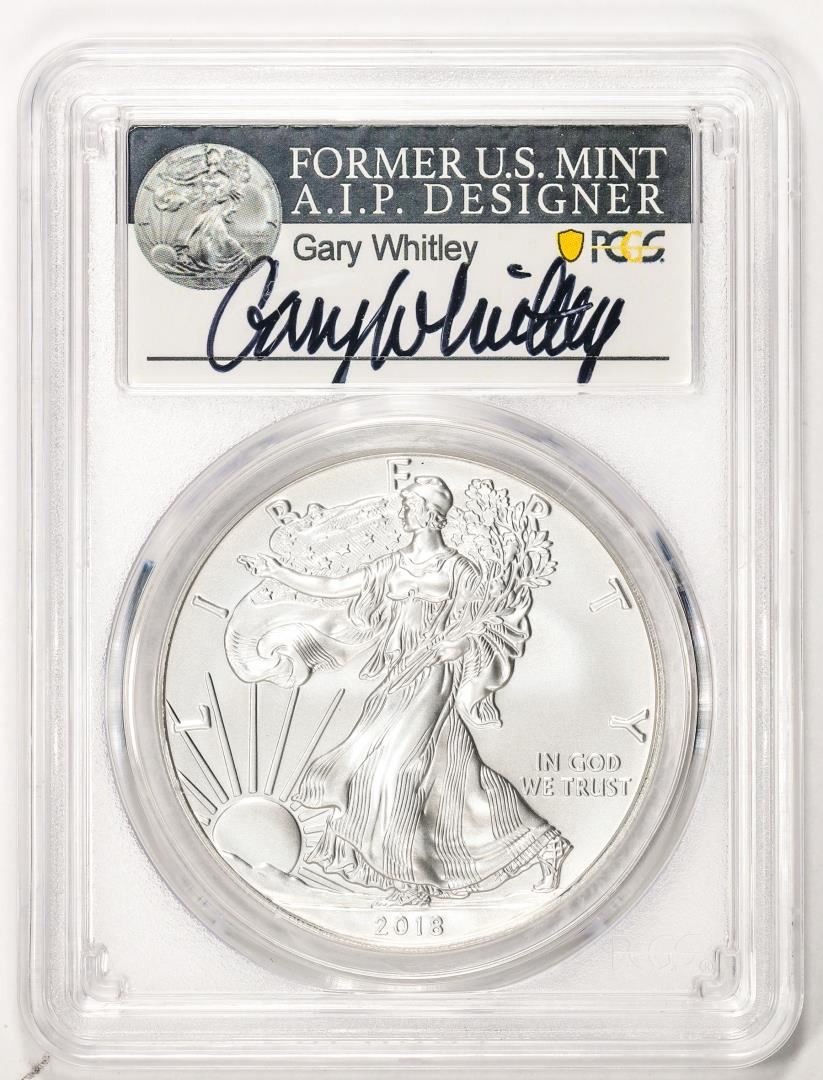 2018-W $1 Burnished American Silver Eagle Coin PCGS SP70 Gary Whitley Signature