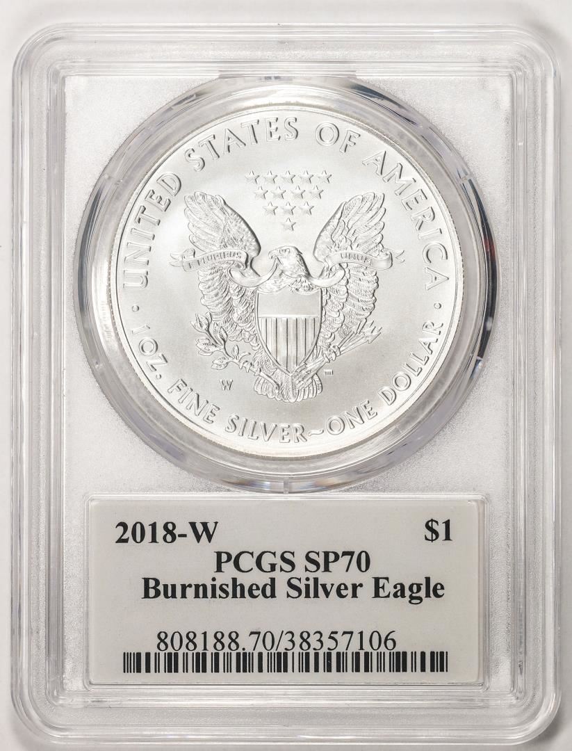 One 2018-W $1 Burnished American Silver Eagle Coin PCGS SP70 Gary Whitley Signature. PCGS Graded.