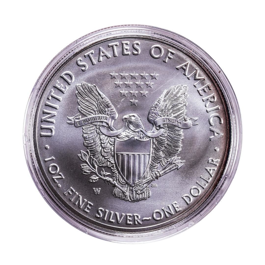 One 2018-W $1 Burnished American Silver Eagle Coin.