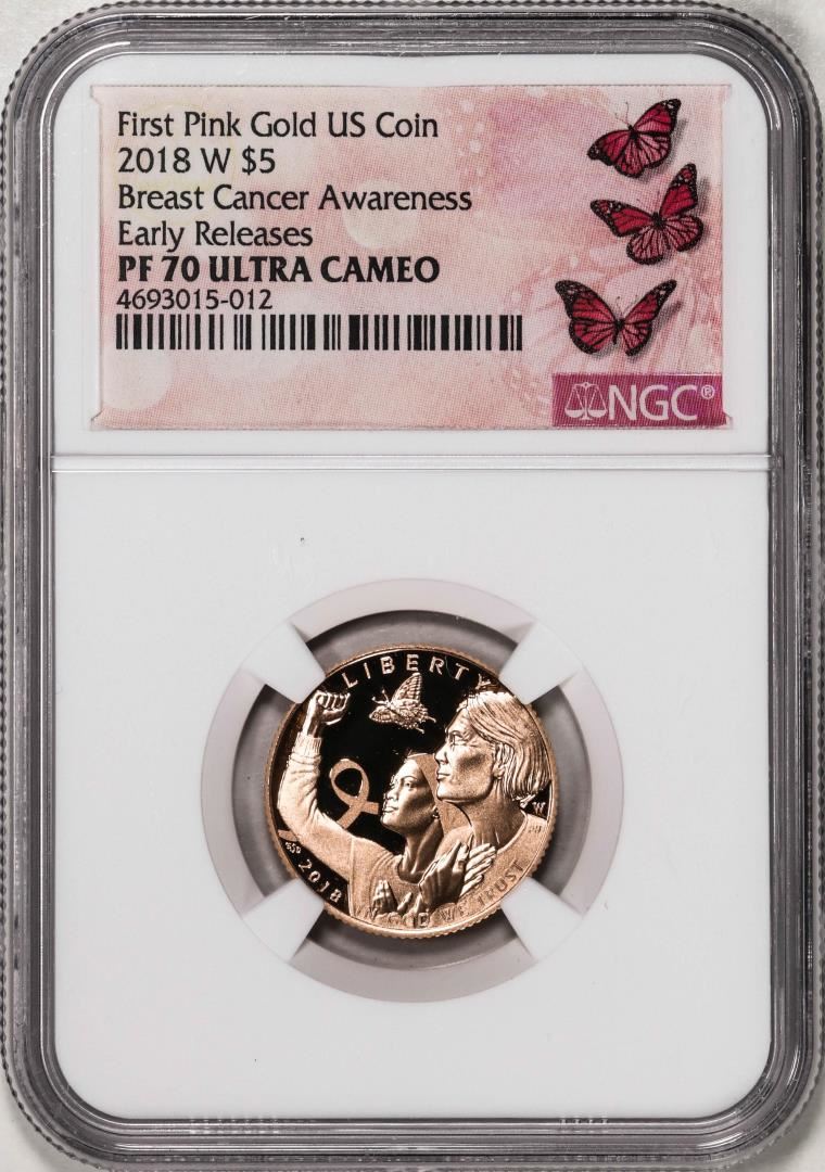 One 2018-W $5 Breast Cancer Awareness Commemorative Gold Coin NGC PF70 Ultra Cameo ER. NGC Certified.