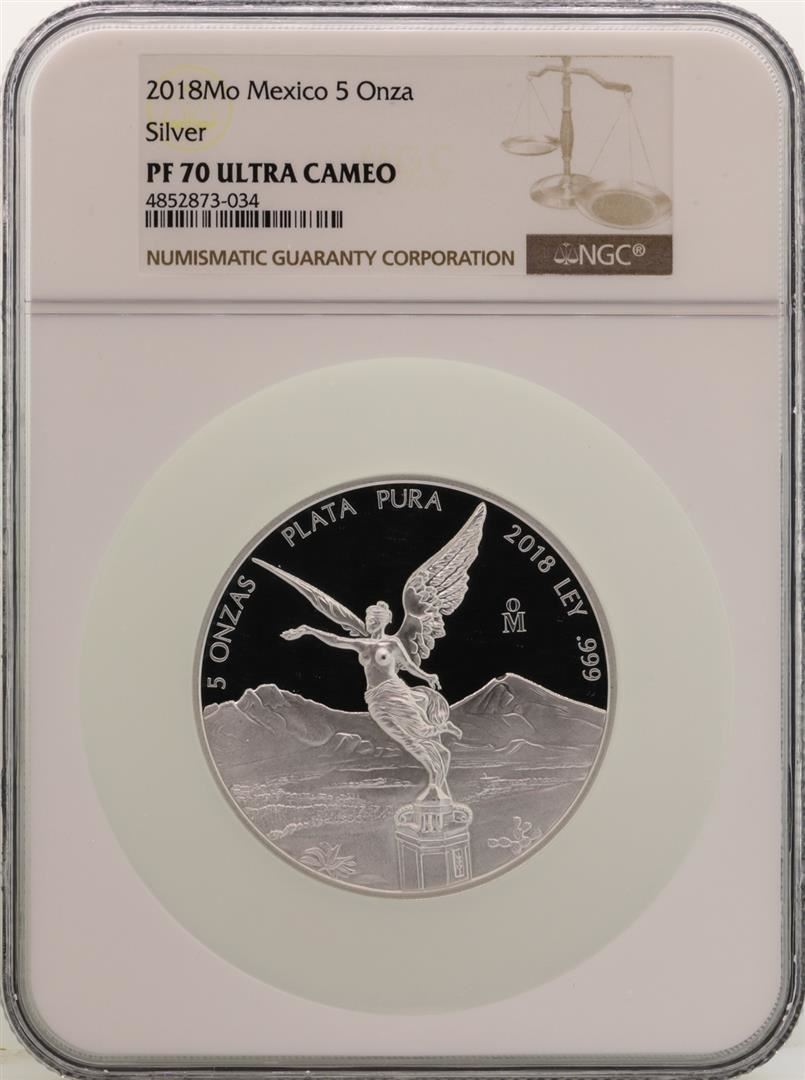 One 2018Mo Mexico 5 Onza Libertad Silver Proof Coin NGC PF70 Ultra Cameo. NGC Certified.