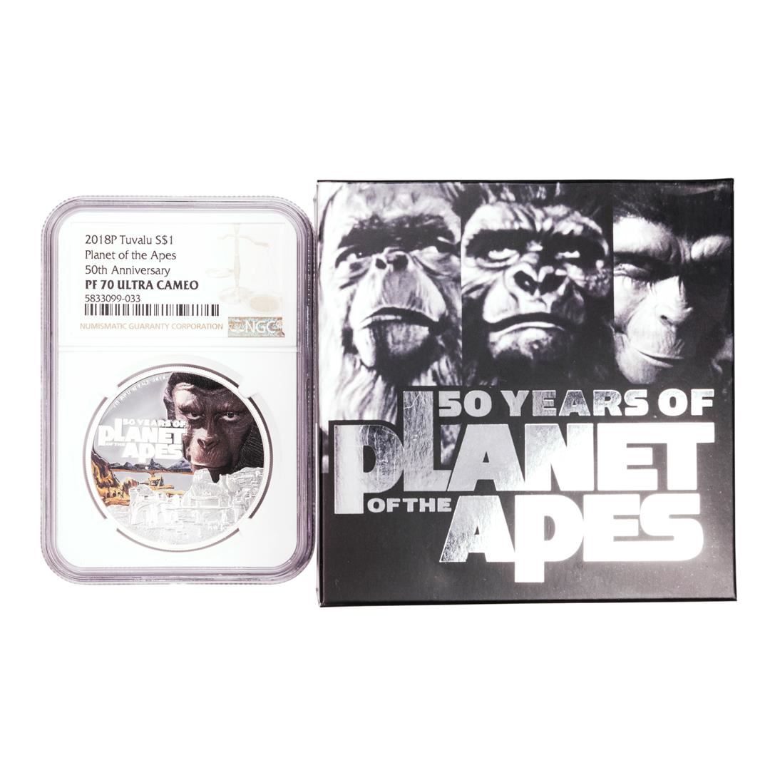 One 2018P Tuvalu $1 Proof Planet of the Apes Silver Coin NGC PF70 Ultra Cameo w/Box & COA. NGC Certified.