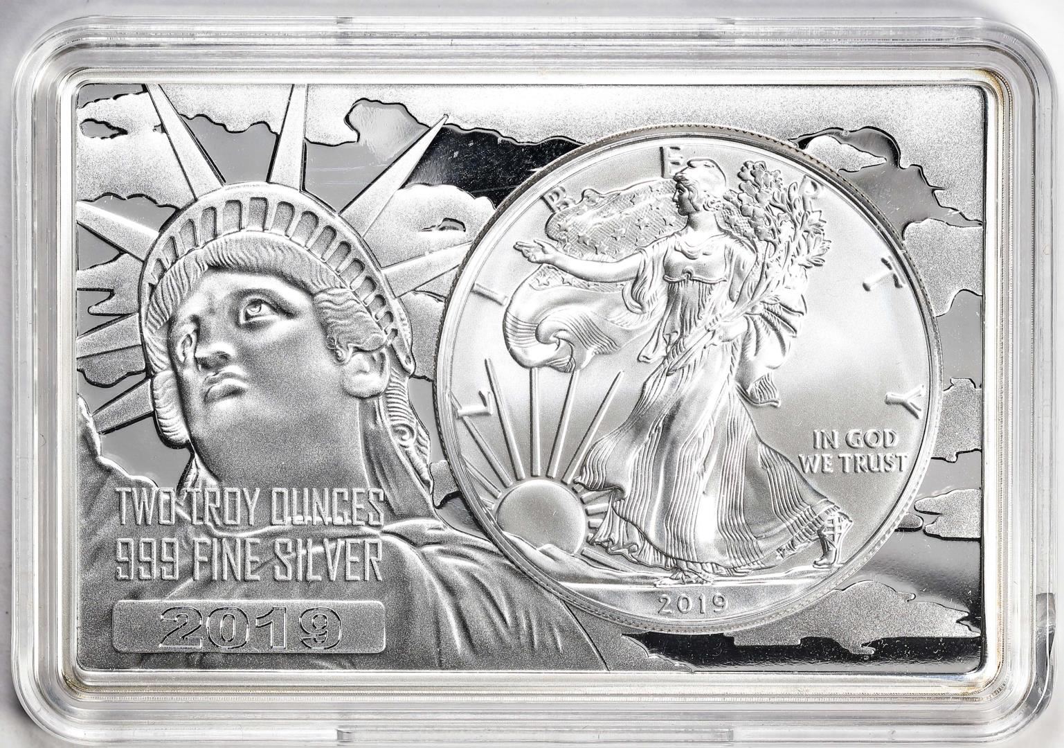 2019 $1 American Silver Eagle Coin & 2oz Silver Bar Set