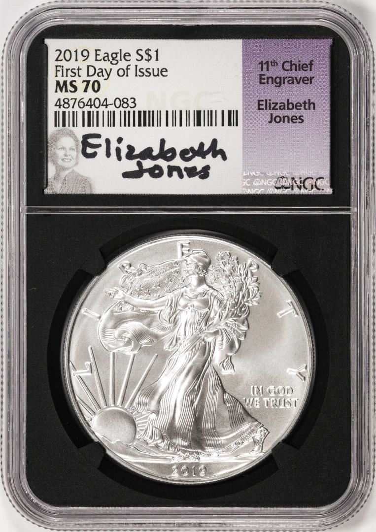 2019 $1 American Silver Eagle Coin NGC MS70 First Day of Issue Jones Signature