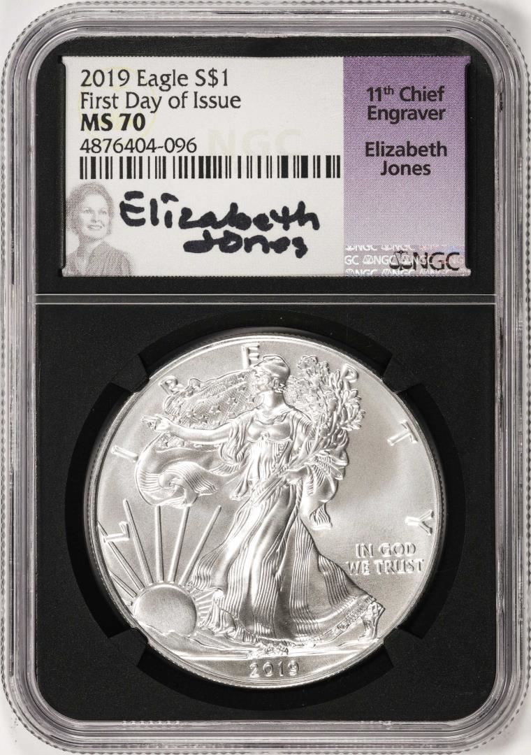 2019 $1 American Silver Eagle Coin NGC MS70 First Day of Issue Jones Signature