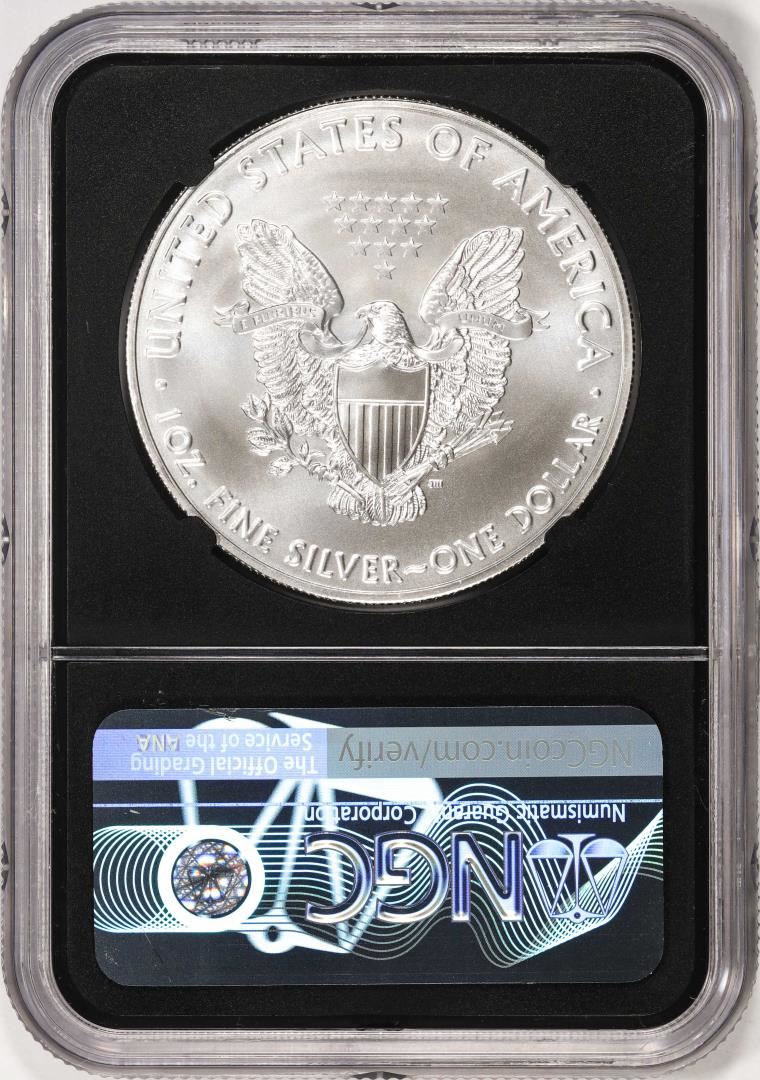 One 2019 $1 American Silver Eagle Coin NGC MS70 First Day of Issue Mercanti Signature. NGC Certified.