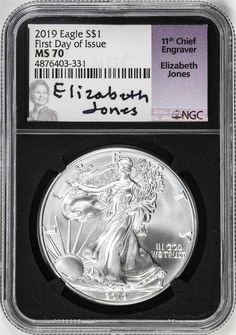 2019 $1 American Silver Eagle Coin NGC MS70 Jones Signature First Day of Issue