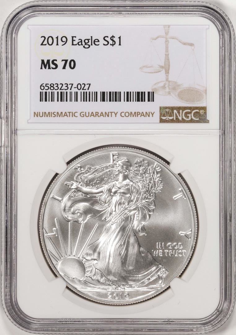 One 2019 $1 American Silver Eagle Coin NGC MS70. NGC Certified.