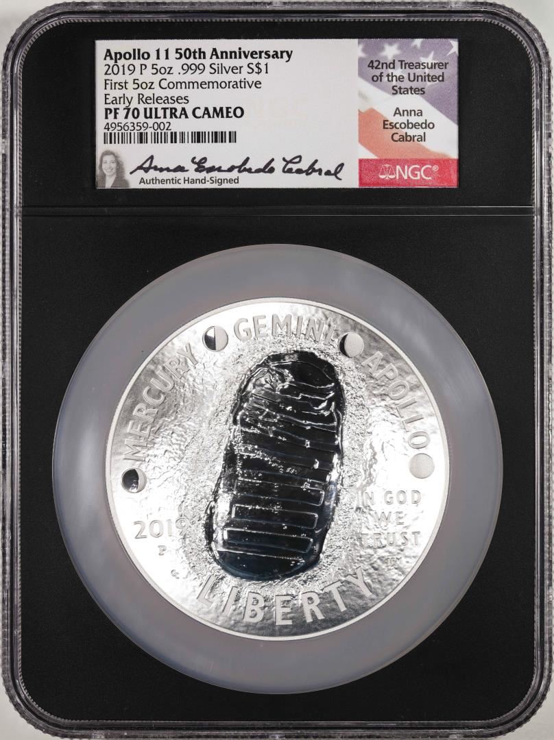 One 2019 $1 Proof Apollo 11th 50th Anniversary 5oz Silver Coin NGC PF70 Ultra Cameo Signed. NGC Certified.