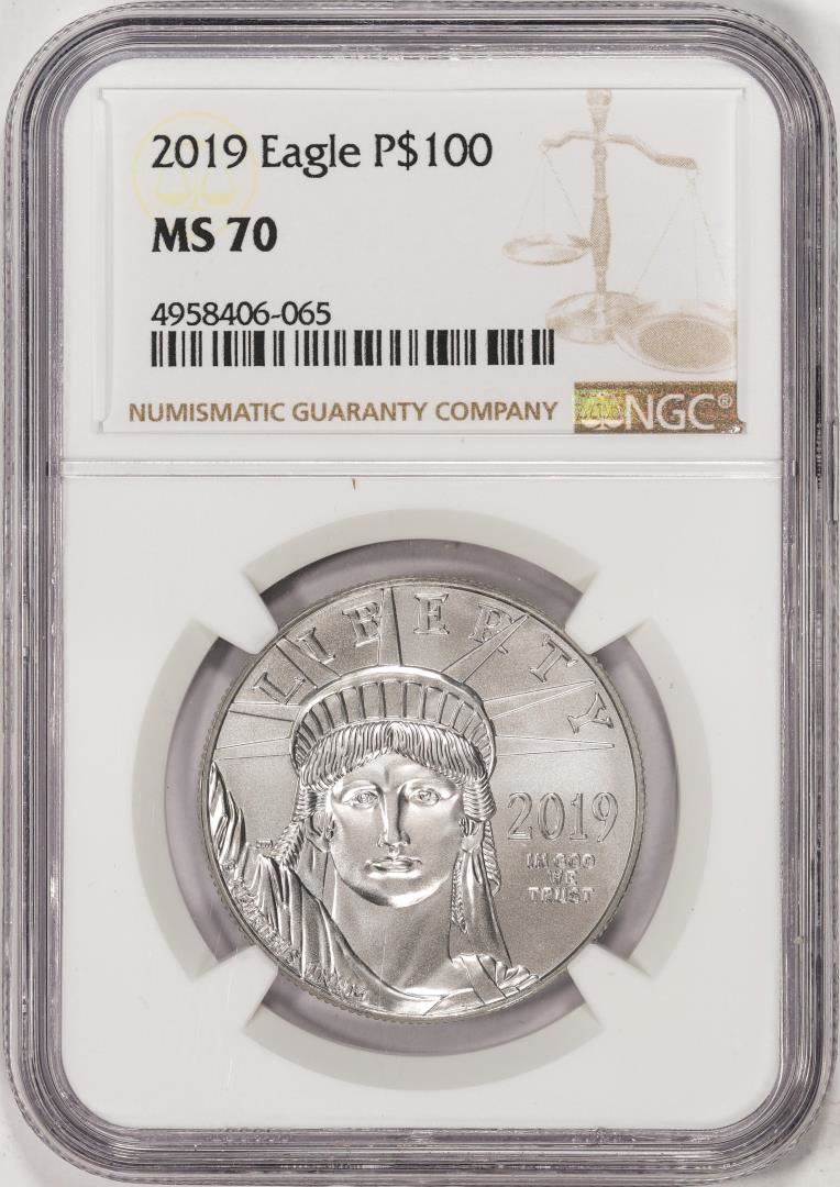 One 2019 $100 Platinum American Eagle Coin NGC MS70. NGC Certified.