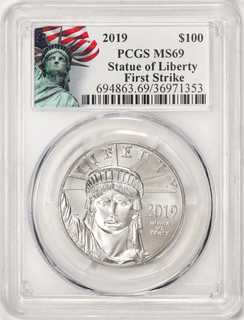 One 2019 $100 Platinum American Eagle Coin PCGS MS69 First Strike. PCGS Graded.