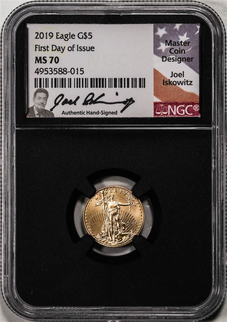 2019 $5 American Gold Eagle Coin NGC MS70 First Date Of Issue Iskowitz Signature