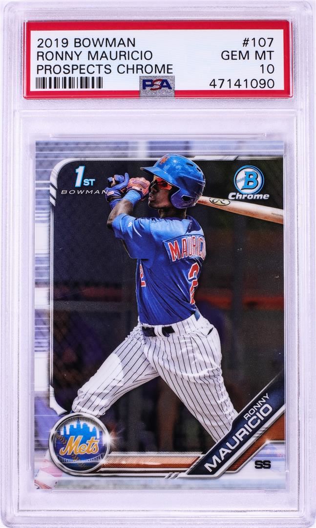 One 2019 Bowman Chrome Prospects Ronny Mauricio MLB Card #107 PSA Gem Mint 10. PSA Certified.