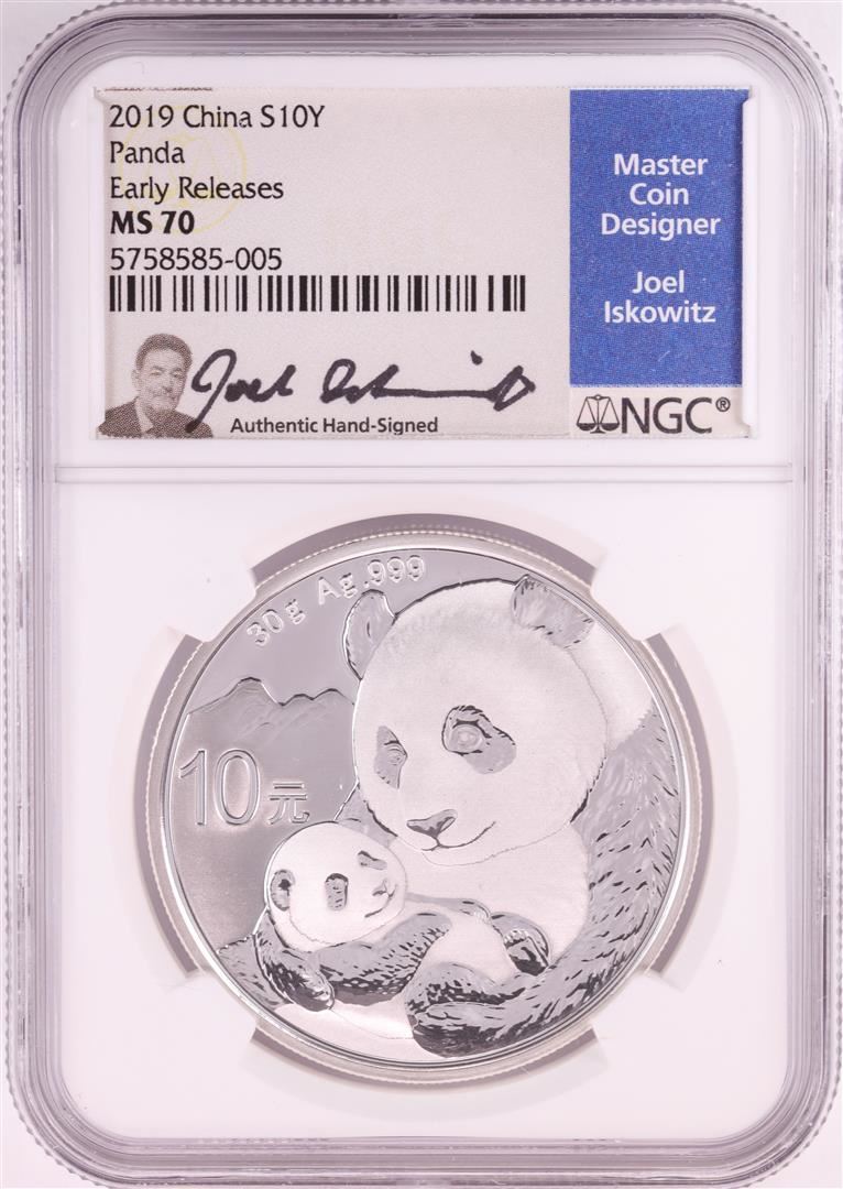 2019 China 10 Yuan Panda Silver Coin NGC MS70 Early Releases Joel Iskowitz Signature
