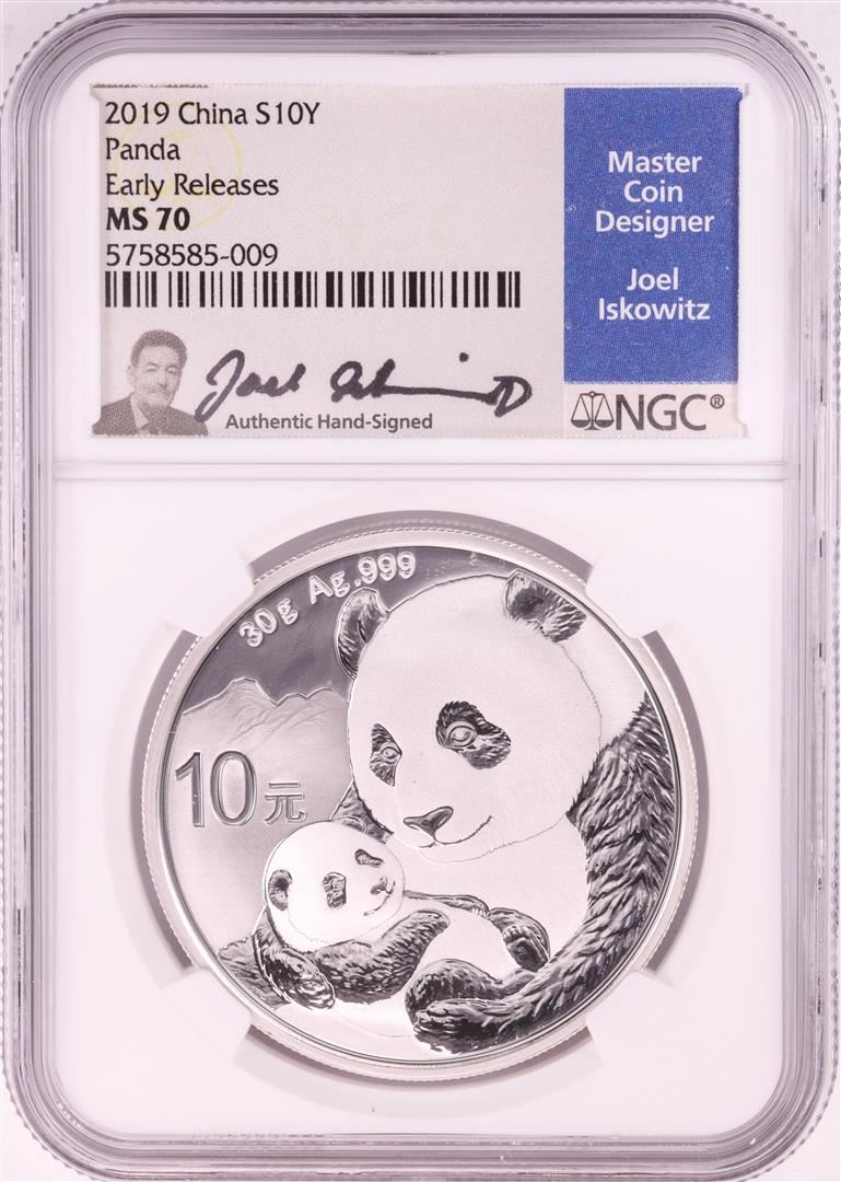 2019 China 10 Yuan Panda Silver Coin NGC MS70 Early Releases Joel Iskowitz Signature