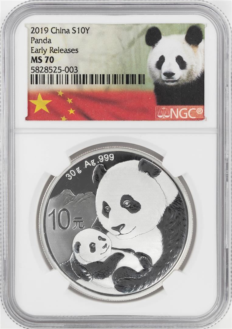 One 2019 China 10 Yuan Panda Silver Coin NGC MS70 Early Releases. NGC Certified.