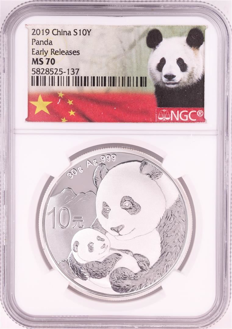 One 2019 China 10 Yuan Panda Silver Coin NGC MS70 Early Releases. NGC Certified.