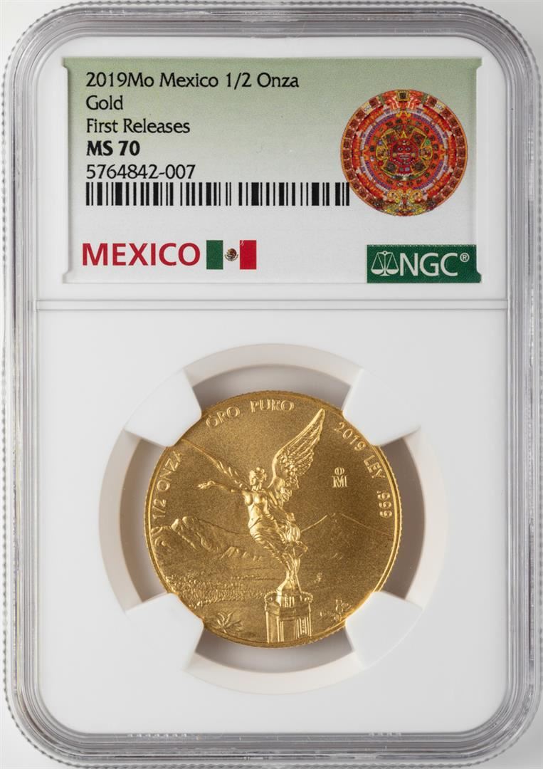 2019 Mo Mexico Libertad 1/2 Onza Gold Coin NGC MS70 First Releases