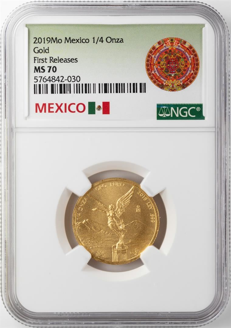 2019 Mo Mexico Libertad 1/4 Onza Gold Coin NGC MS70 First Releases