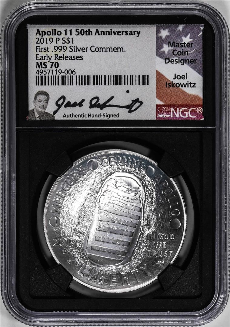 2019-P $1 Apollo 11 Commemorative Silver Dollar Coin NGC MS70 ER Iskowitz Signature