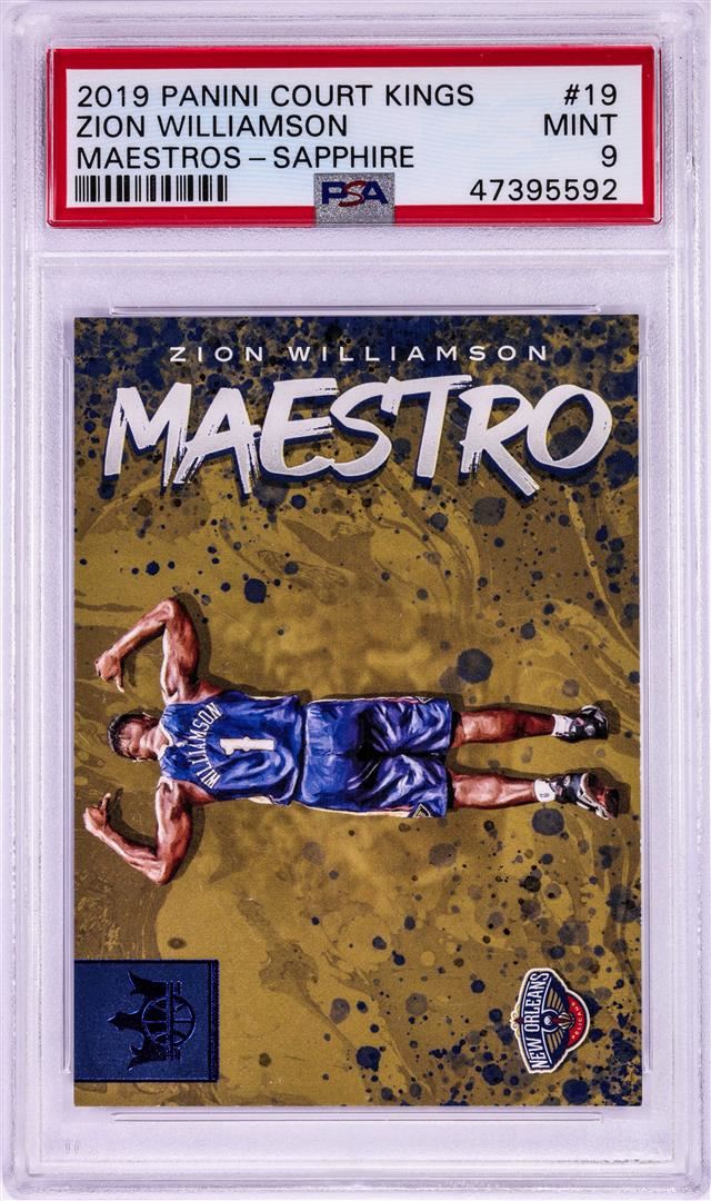 One 2019 Panini Court Kings Maestros Sapphire Zion Williamson NBA Card #19 PSA Mint 9. PSA Certified.