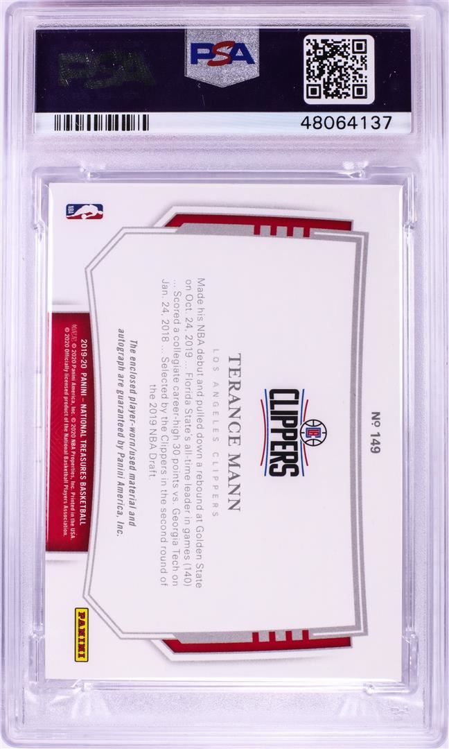 2019 Panini National Treasures Patch & Auto Terance Mann Horizontal Card #149 PSA Mint 9