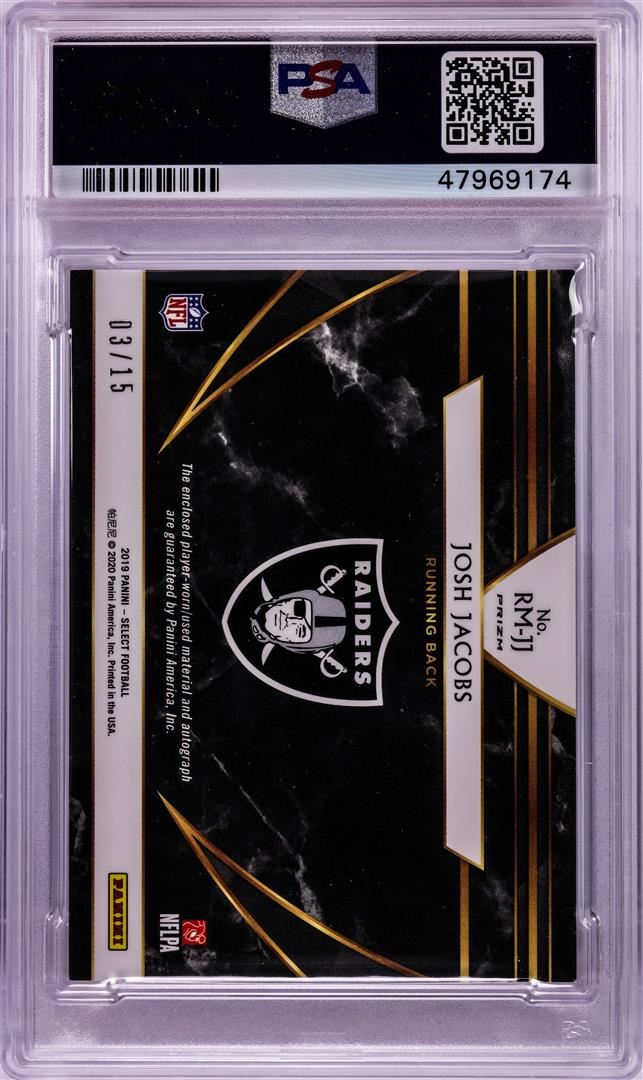 2019 Panini Select RPA Signature Tie-Dye Josh Jacobs NFL Card #RMJJ PSA Near Mint 8