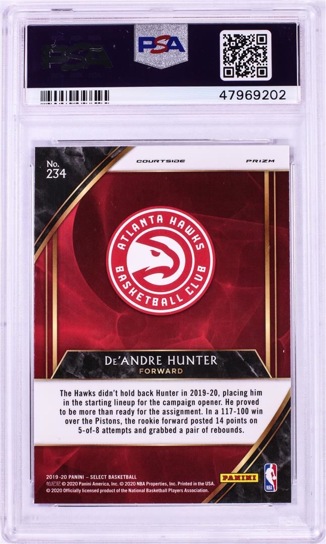 One 2019 Panini Select Red Wave De'Andre Hunter NBA Card #234 PSA Gem Mint 10. PSA Certified.