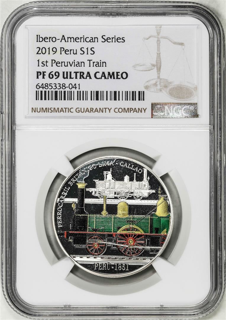 One 2019 Peru 1 Sol Ibero Historic Peruvian Train Proof Silver Coin NGC PF69 Ultra Cameo. NGC Certified.