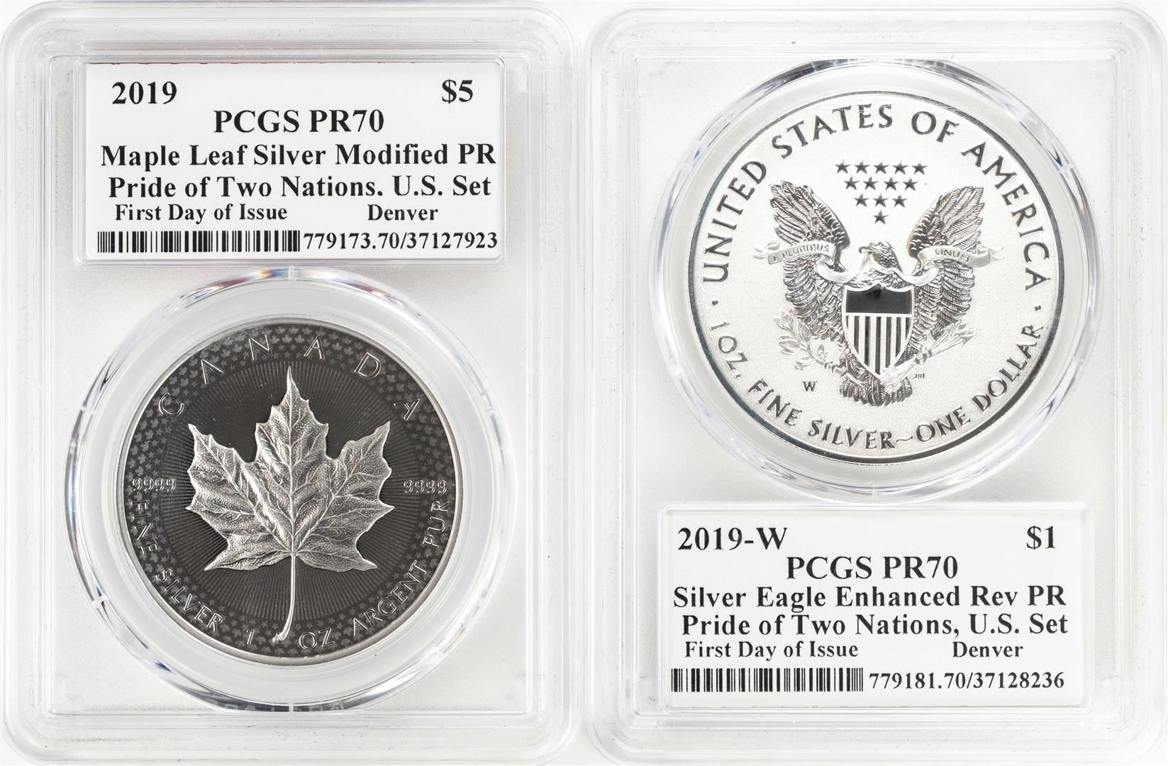 2019 Pride of Nations American Eagle & Canadian Maple Leaf Coin Set PCGS PR70 Signed