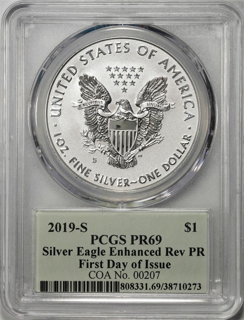 One 2019-S Enhanced Reverse Proof $1 Silver Eagle Coin PCGS PR69 FDOI Cleveland Signature. PCGS Graded.