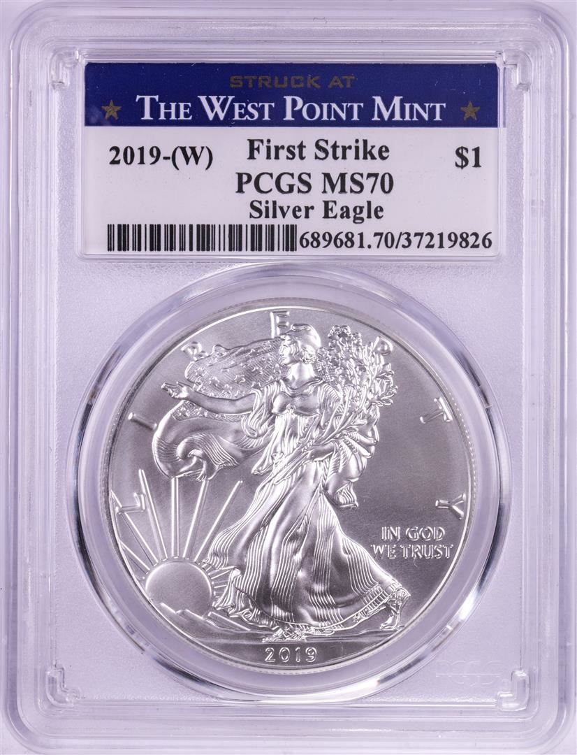 One 2019-(W) $1 American Silver Eagle Coin PCGS MS70 First Strike. PCGS Graded.