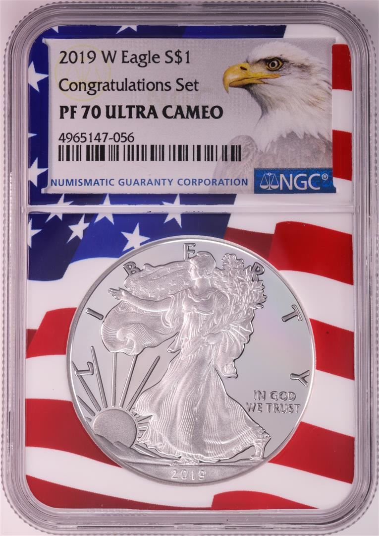 2019-W $1 Proof American Silver Eagle Coin NGC PF70 Ultra Cameo Congratulations Flag
