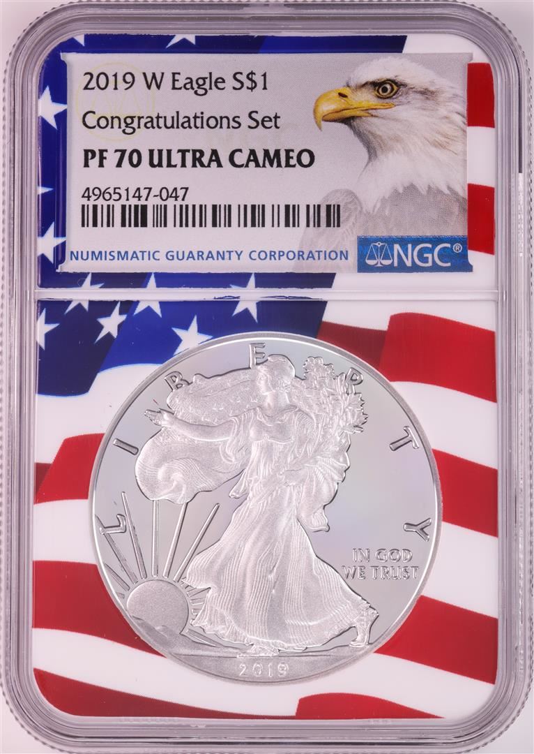 2019-W $1 Proof American Silver Eagle Coin NGC PF70 Ultra Cameo Congratulations Flag