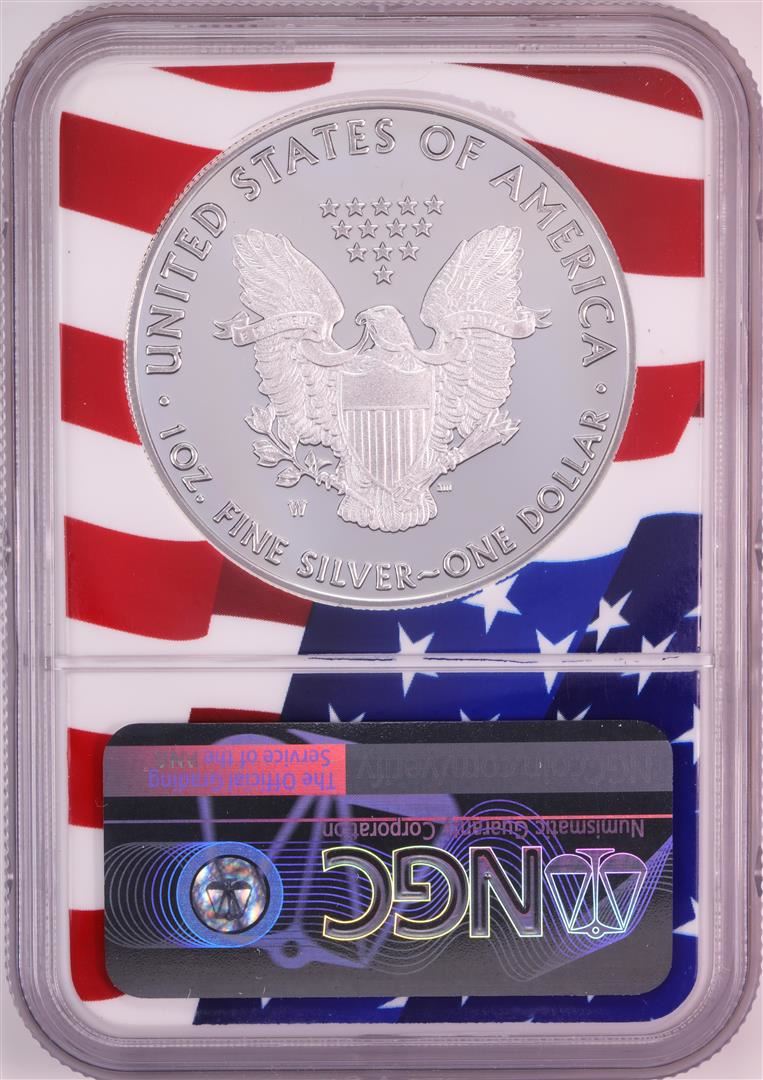 One 2019-W $1 Proof American Silver Eagle Coin NGC PF70 Ultra Cameo Congratulations Flag. NGC Certified.
