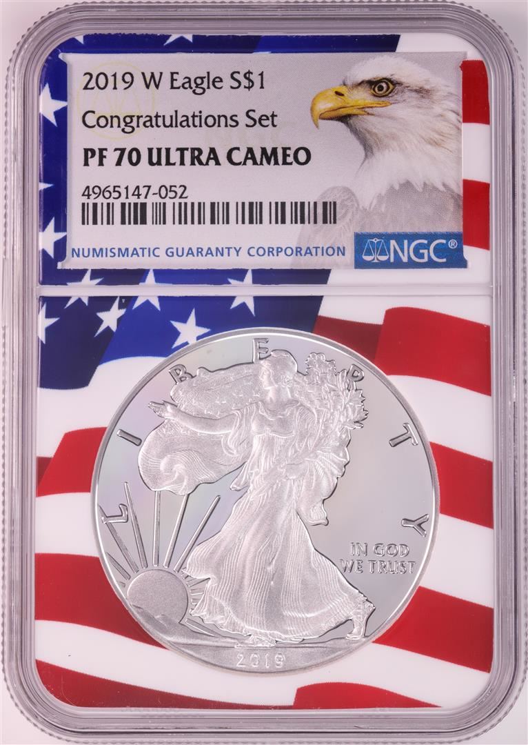 2019-W $1 Proof American Silver Eagle Coin NGC PF70 Ultra Cameo Congratulations Flag